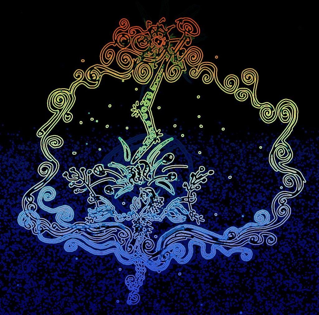At the heart of the tradition is the Great Song of Grandmother Ocean that permeates the whole of creation. This Song reached into the darkness of the void and called the Lightning, and at the moment of creation and birth of all things, that Lightning, that First Fire’s song of love became the forge/hearth which is within the hearts of all things. It is the Song of the Lightning and the Ocean that brought the Stars and Earth into being through it’s singing, and through the same song, the stars fell to earth to become our first ancestors of The Great Forest.